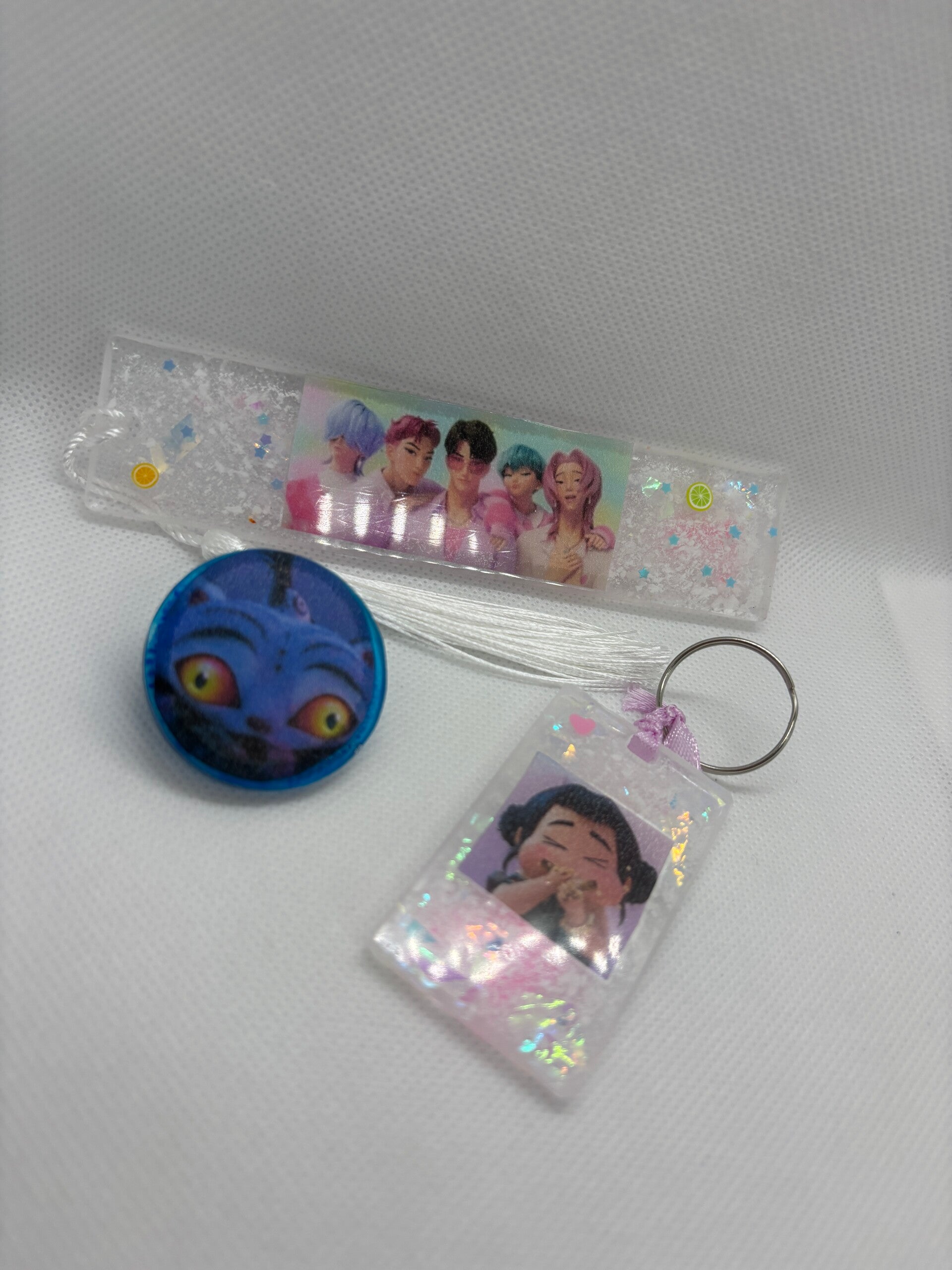Pins, porte clé et marque page. 😈🥤