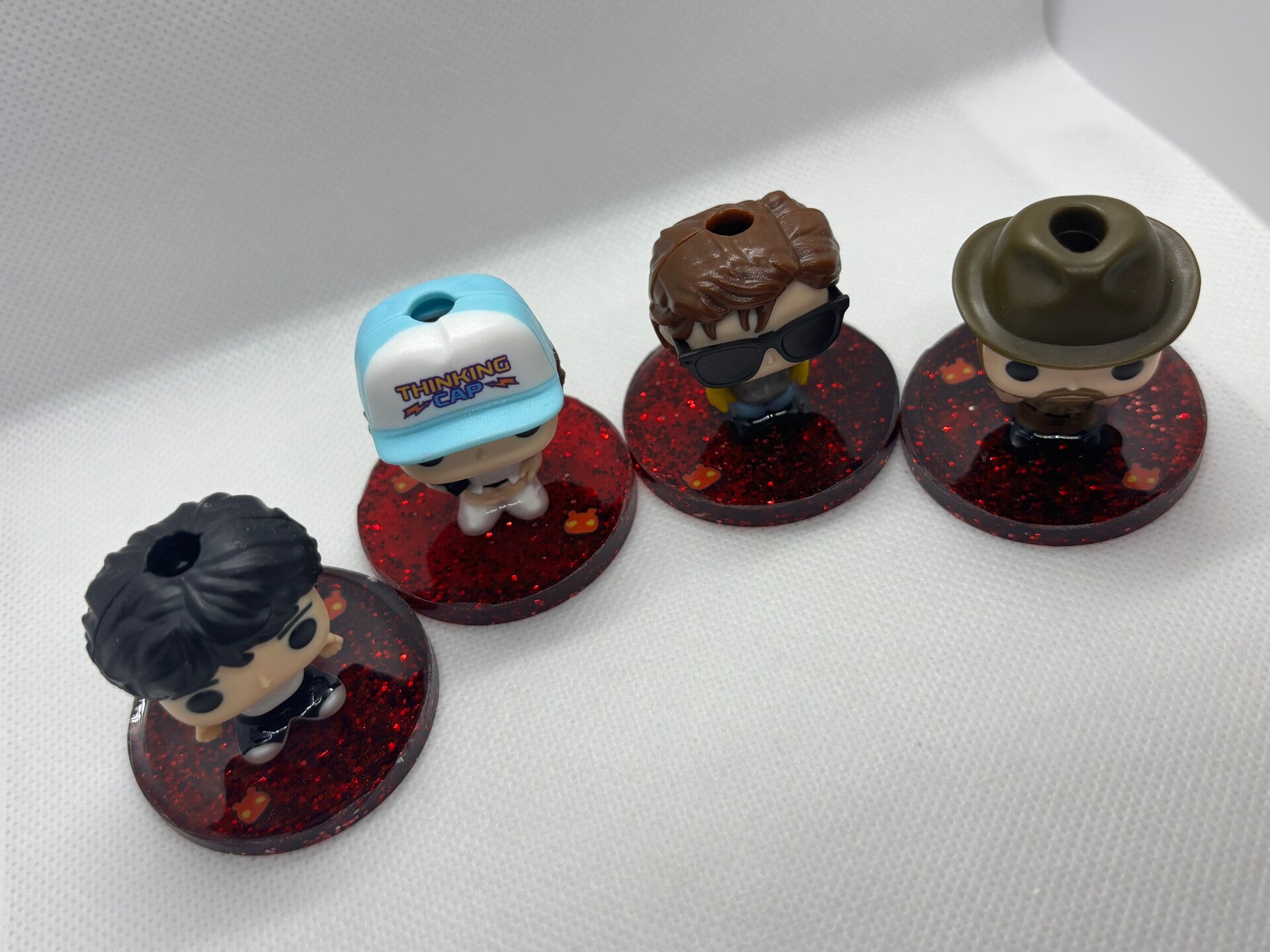 J'ai améliorer des figurines stranger things avec de jolis socles vibe upside down 🎶🧢📻